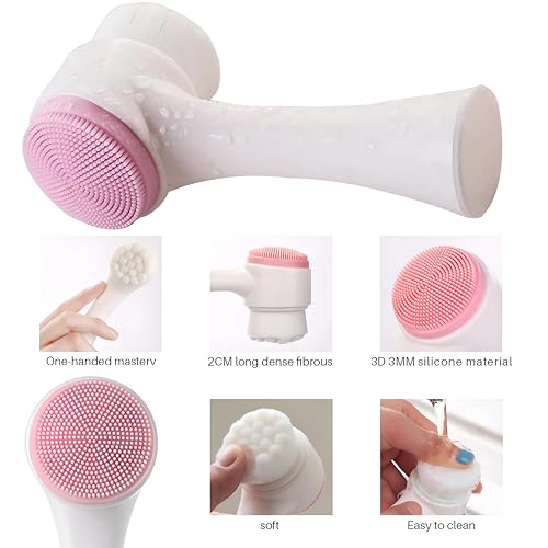 - 2-in-1 design with soft nylon bristles for deep pore cleansing on one side and silicone pad for gentle exfoliation and massage on the other, perfect for complete facial care