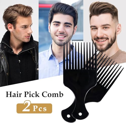 ToolHouse - 2 Pcs Hair Comb, Professional Styling Comb, Smooth Hair Pick Comb, Wide Tooth Comb Hairdressing Styling Tool, for Natural Curly, Hair Thick Hair Women and Men (Black)