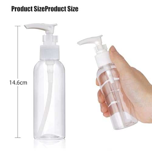 - Package Contents: A set of 4 empty clear travel bottles, each bottle holds approximately 3.4 oz/100 ml of liquid. Large capacity pump bottle dispenser provides ample supply to meet your needs. Suitable for most bathroom products and cosmetics.