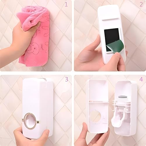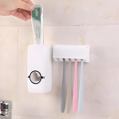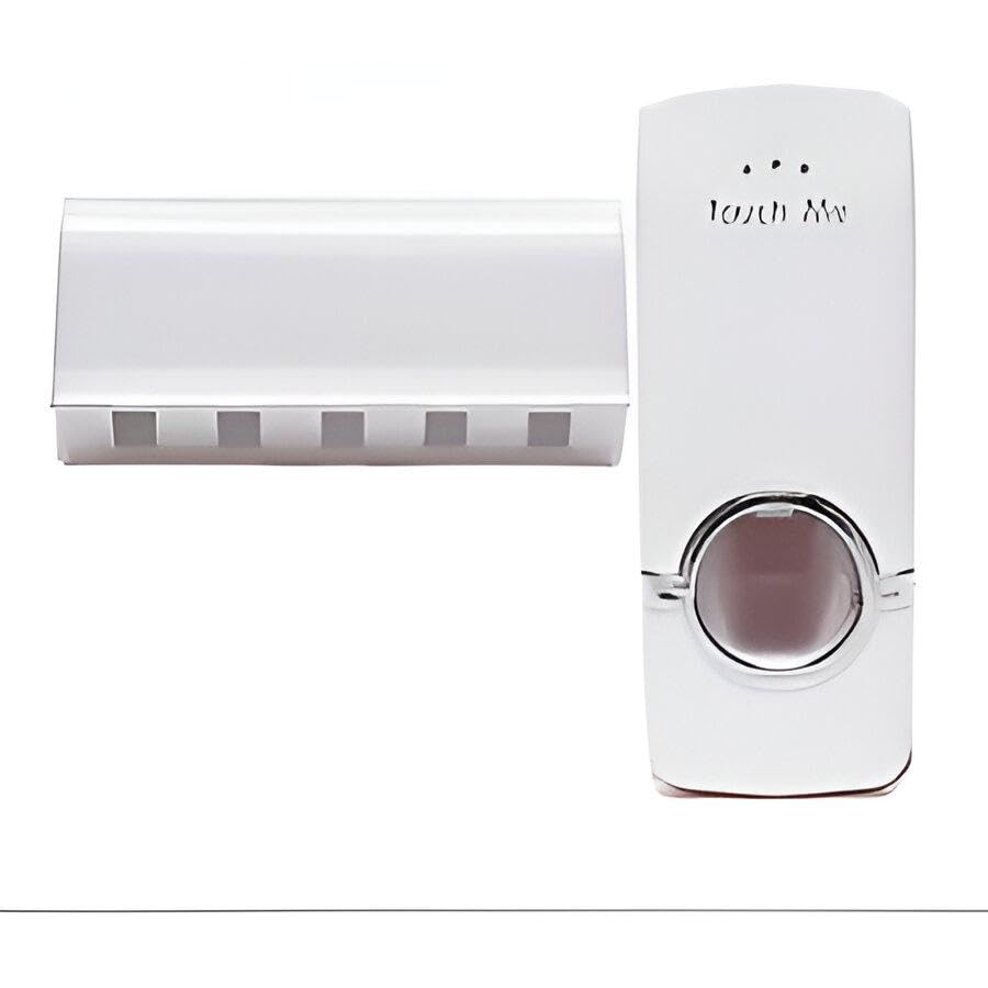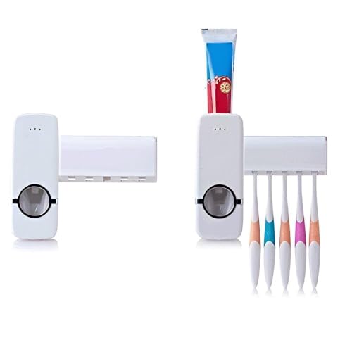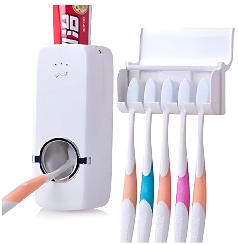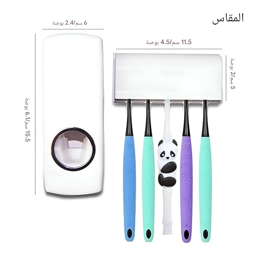 Generic - منظم اسنان - حل صغير يوزع معجون الاسنان بضغطة بسيطة، يتضمن حامل بخمس فرش ومنظم حمام صغير، غطاء ابيض مصمم للديكور النظيف والبسيط