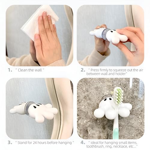- Resistente y pegajoso: el bonito soporte para cepillos de dientes está hecho de material AB-S seguro y ecológico, impermeable y a prueba de óxido, puede succionar firmemente en superficies lisas, secas y limpias, como mármol, vidrio, azulejos, plástico, madera y metal. Fácil montaje en pared sin taladrar ni tornillos. El paquete incluye almohadillas de gel pegajoso, se puede utilizar para fortalecer la succión. Pero los ganchos no son adecuados para superficies irregulares o polvorientas como pa