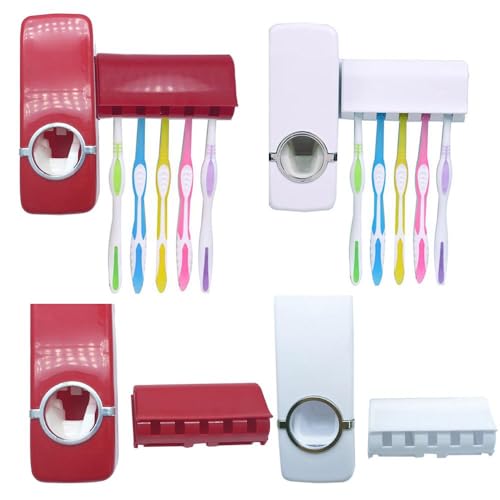 Generic - موزع معجون اسنان مع حامل مدمج مكون من 5 فرش - منظم حمام ذكي، صحي وموفر للمساحة، حل سهل الضغط للعناية بالاسنان