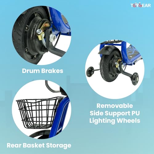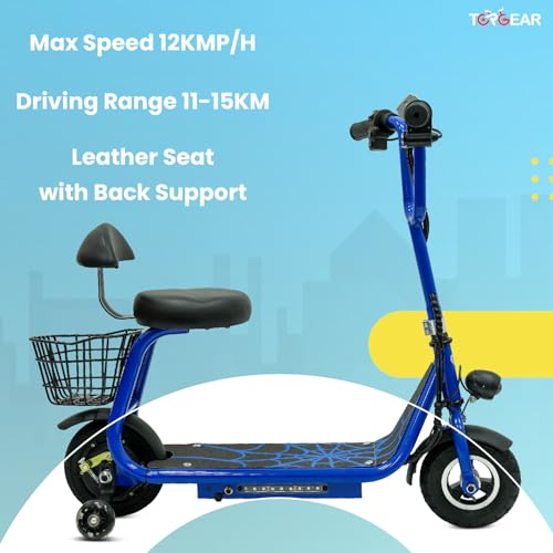 TG Top Gear - سكوتر كهربائي TG 550 من توب جير - سكوتر قابل لاعادة الشحن مع سلة خلفية ومقعد جلدي وعجلات تدريب ومفتاح تشغيل - محرك عديم المسفرات ومصابيح LED - مثالي لوزن حتى 80 كجم