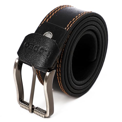 Generic - top leather (1018) brand Men's Casual Rugged Saddle Leather Belts Quarry 2 sewing Black.