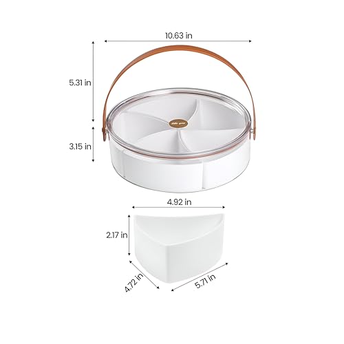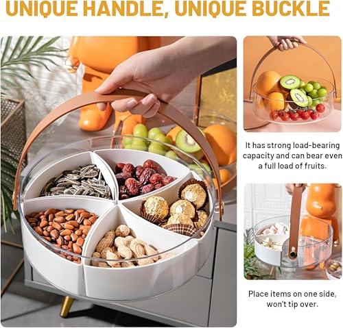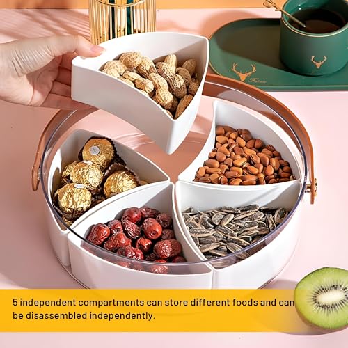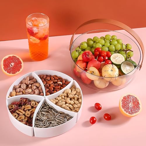 - Five separate inner compartments plus a base that can double as a large storage box keep snacks, fruits, and nuts organized and easily accessible during transport.