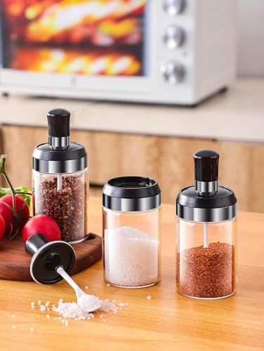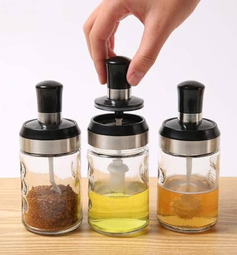 - مجموعة برطمانات توابل من زجاج البوروسيليكات عالي الجودة مع ملعقة وتصميم فريد من نوعه.