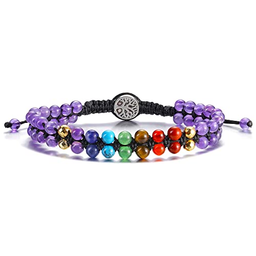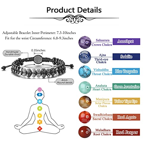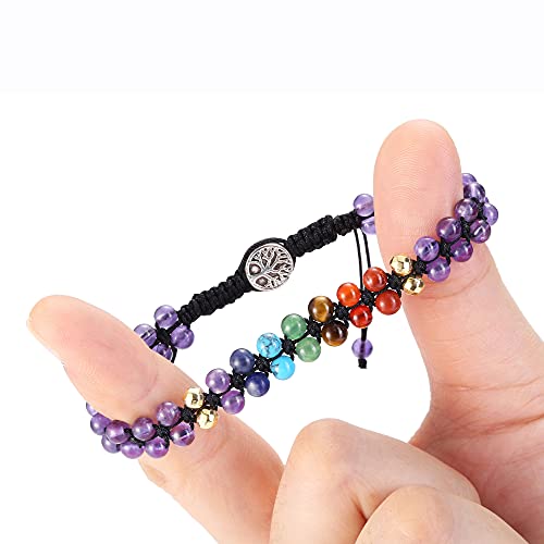 Top Plaza - Top Plaza 7 Chakra Reiki Healing Crystals Stone Bracelets Natural Gemstone Beads Bracelets for Women Men Adjustable Tree of Life Bracelet Healing Crystal Jewelry Gifts for Birthday, Stone, not-known