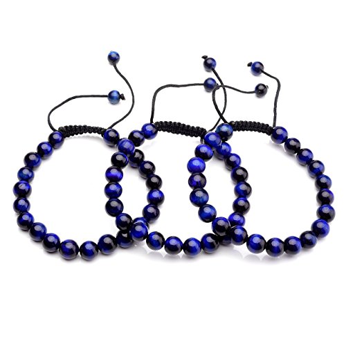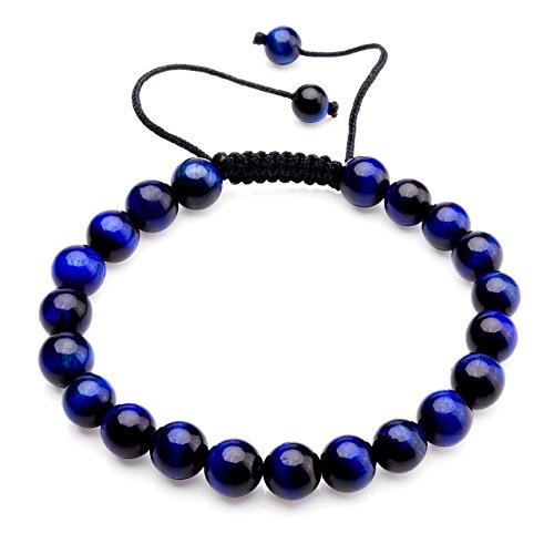 Top Plaza - Top Plaza Lava Rock Agate Onyx Tiger Eye Stone Gemstone Bead Healing Power Bracelet W/Adjustable Braided Macrame Tassels, 10 inches