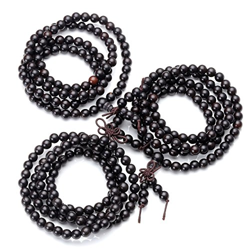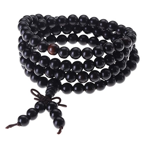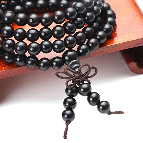 Top Plaza - Top Plaza Unisex 108 Natural Wood 6mm 8mm Beads Bracelet Buddhist Rosary Mala Necklace(8mm Sandalwood Duobao), 8mm