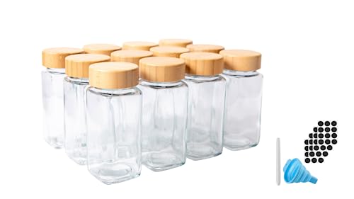 Topali - 24 glass species jars with bamboo lid.Includes labels, pen and collapsible funnel