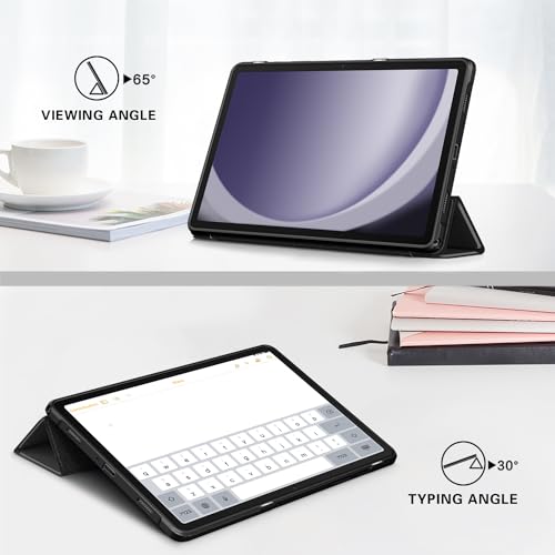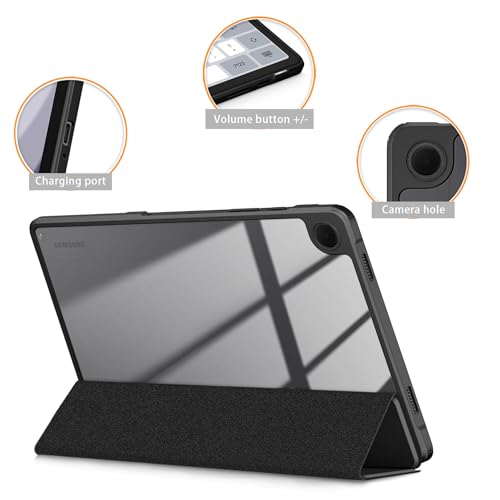 TOPCASE - حافظة حماية لجهاز سامسونج جالكسي تاب A9 بلس 11 انش 2023 من توب كيس ظهر شفاف البولي كربونات والبولي يوريثين الحراري مضاد للصدمات مع خاصية التنبيه - السكون التلقائي اسود