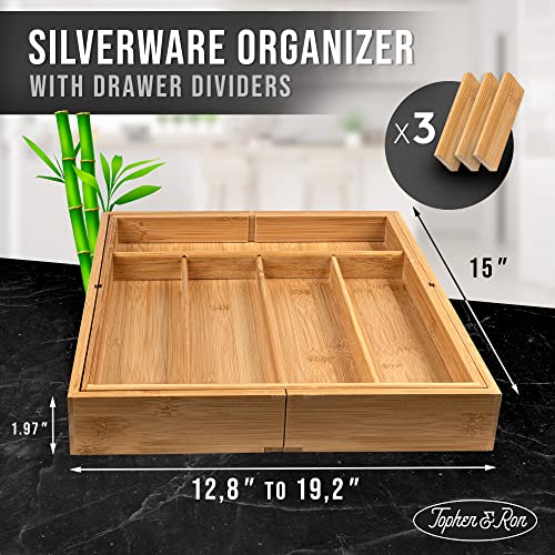 Topher & Ron - Topher & Ron - Silverware Organizer with Drawer Dividers - Kitchen Drawer Organizer - Utensil Organizer - silverware tray for drawer - 3x Extra Dividers