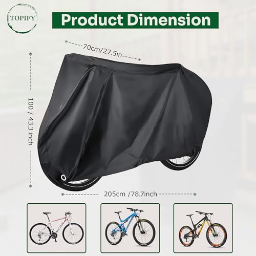 - Product size: Experience hassle-free installation with our bike cover's elastic design, ensuring quick and simple setup. Measuring 205x100x105 cm, it fits most bikes, making it perfect for mountain bikes, road bikes, and more.
