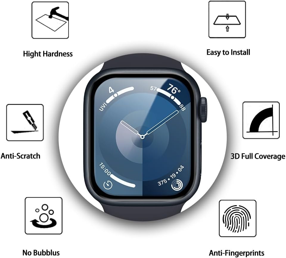 - حماية شاملة: شاشة حماية مصممة خصيصاً لساعة آبل سلسلة 9 مقاس 45 ملم، تغطي الشاشة بالكامل لحماية قصوى