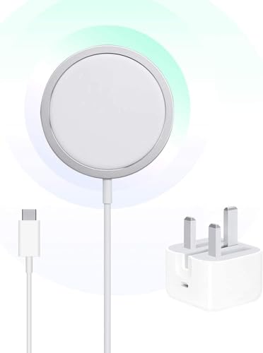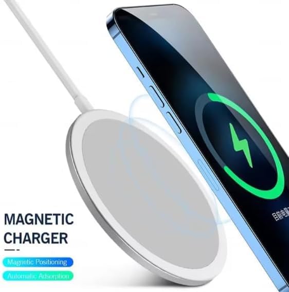 TopPrime - TopPrime، شاحن لاسلكي مغناطيسي ٢٠ واط، مع كابل شحن USB-C، متوافق مع ايفون ١٢/١٢ ميني/١٢ برو ماكس، أبيض مع محول طاقه ثلاثي