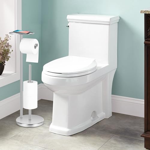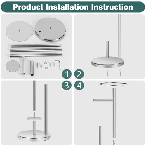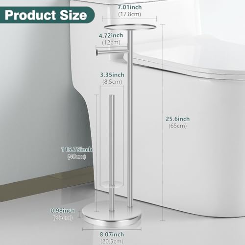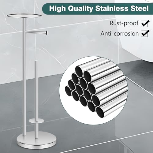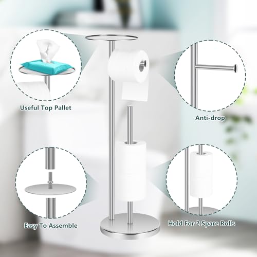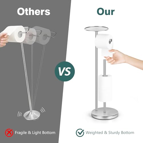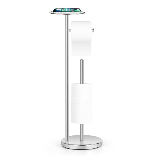 Topsky - توبسكي حامل ورق تواليت إضافي قائم بذاته للحمام لـ 3-4 بكرات جامبو، موزع ورق مناديل احتياطي من الستانلس ستيل مقاوم للصدا مع وظيفة الاحتياطي (فضي مع حامل)