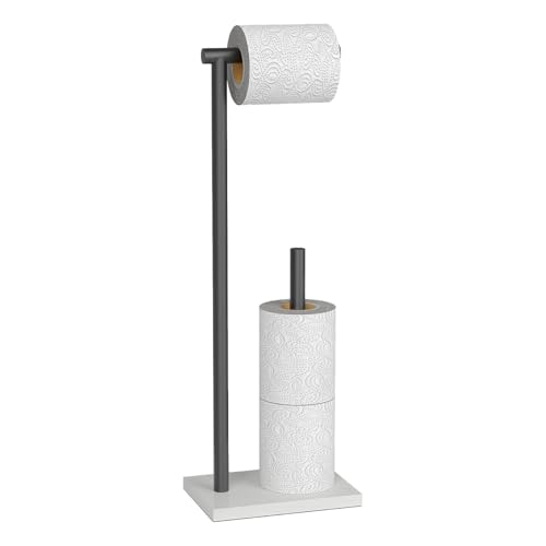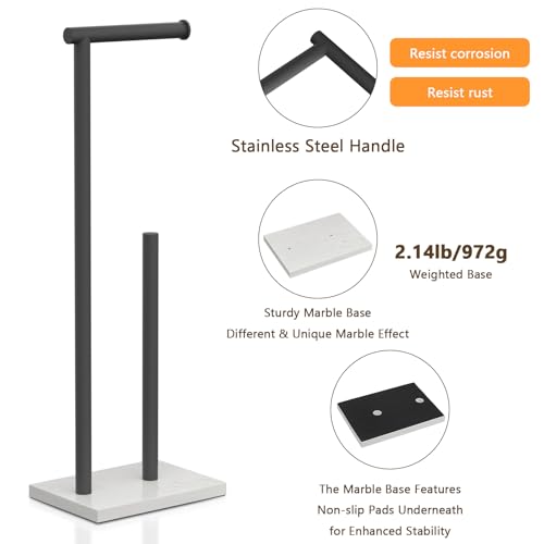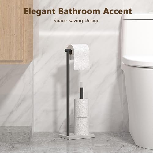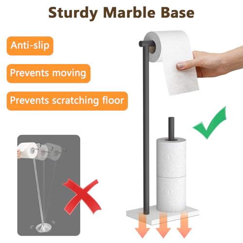 Topsky - Topsky Toilet Paper Holder Storage, Floor Tissue Box Holder, Marble Effect Base Tissue Holder with Reserve, Stainless Steel Toilet Roll Holder for Bathroom - Rectangle Base (Black)