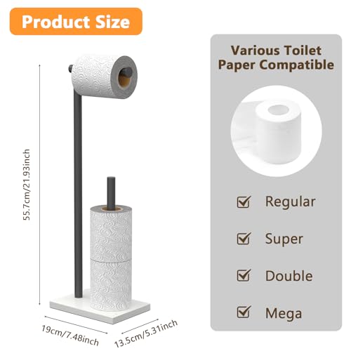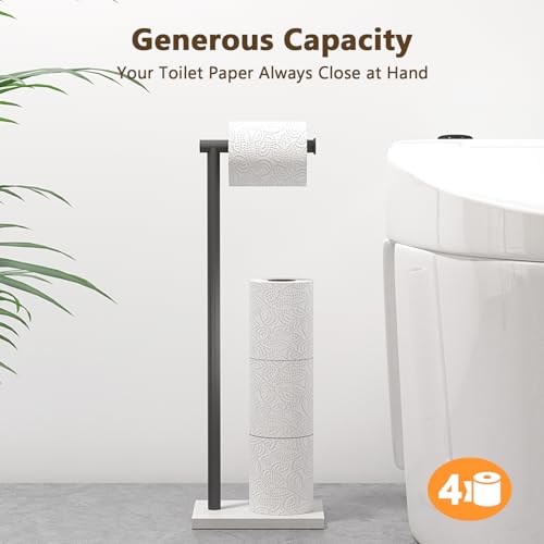 - Large capacity - Holds 4 rolls of toilet rolls. Freestanding toilet paper holder with storage can dispenses one roll of paper and holds three spare roll of paper. This toilet paper storage stand is compatible with many sizes of rolls.