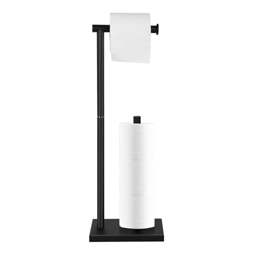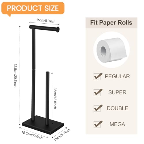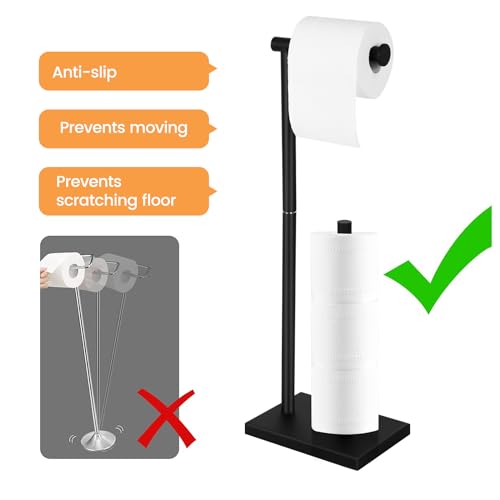 - High-quality - The toilet roll holder stand is made of premium stainless steel, which is sturdy and durable. Rectangle base plate as the base of the tissue holder has a certain weight and is not easy to turn over. The freestanding design allows you to move the toilet paper holder stand anywhere.