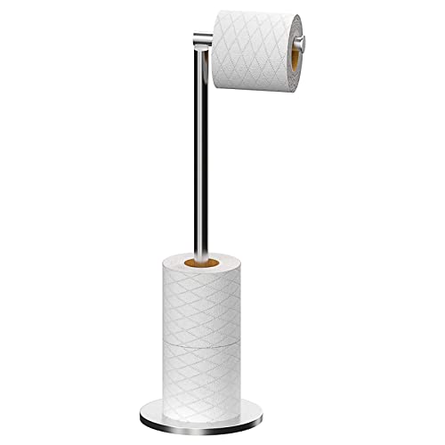 - 【Size】 (W x D x H) - 6.3×6.3×20.6 inches, standard size toilet roll holder stand for WC.This free standing toilet roll holder has nice chrome finish and is very modern.,with compact design and storage feature, you can move the toilet paper stand to where it’s needed