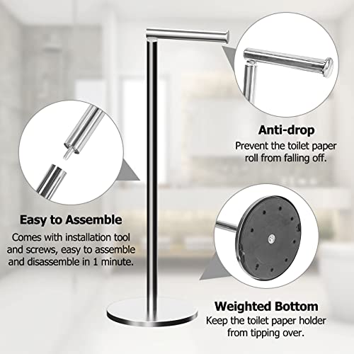 - 【Sturdy Material 】The toilet roll holder is made of high quality stainless steel, with a heavy duty and non-slip base preventing it from tipping over. Besides, there is a anti-scratch pad under the base to prevent scratching of the floorrustproof and stable