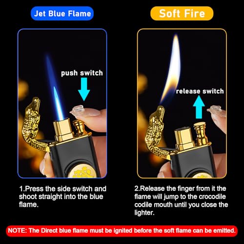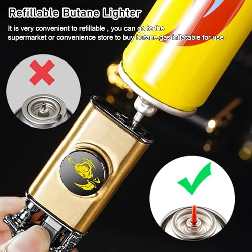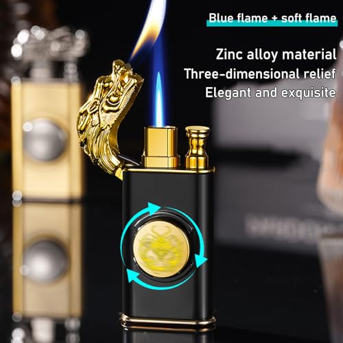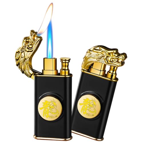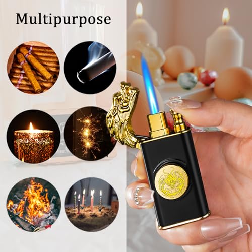 CYJBAO - ولاعة شعلة أنيقة بنقش تنين مجسم مقاومة للرياح قابلة للتعديل ولهب ناعم مع أداة تعديل اللهب، ولاعة بوتان قابلة لإعادة الملء للمطبخ والتخييم والهدايا، بدون غاز البوتان، أسود 2