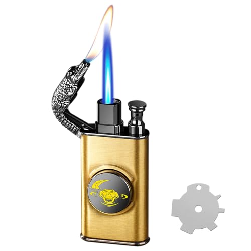 XQBBIDM - ولاعة سحرية بتصميم تنين مزدوجة اللهب مع أداة تعديل اللهب، ولاعة لهب بارد قابلة للتعديل وإعادة الملء، هدايا للرجال والأصدقاء للأماكن الخارجية والداخلية، ولاعة بدون بوتان بتصميم تمساح بلون ذهبي