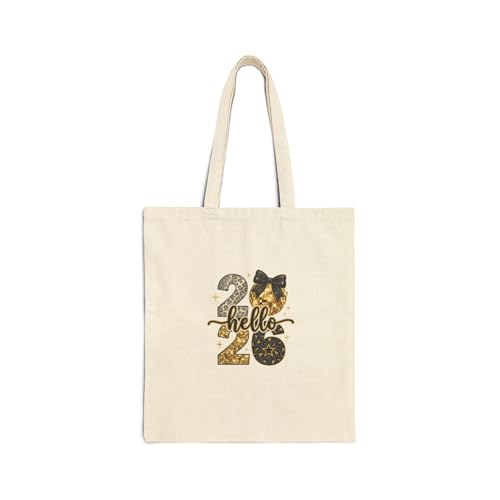 Generic - Tote Bag - "2026 Hello" Leopard Pattern Golden Disco Ball Canvas Zipper Bag - Premium Cotton Shoulder Bag for New Year Gifts, Cream White Durable and Fashionable.