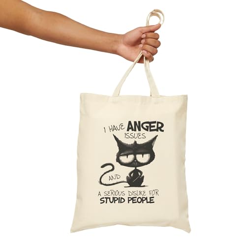 Generic - Tote Bag - Beige Canvas Zipper Bag Funny Cat Quotes Tote Bag With Zipper-700