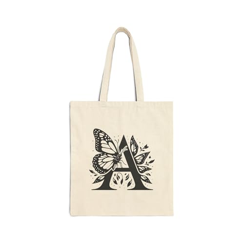 Generic - Tote Bag - Butterfly Monogram Alphabet Tote Bag With Zipper-595 Beige Canvas Zipper Bag