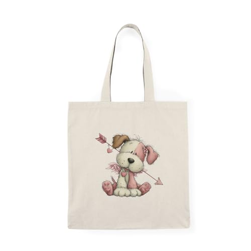 Generic - Tote Bag – Canvas Zipper Bag - "Cupid Little Dog" - Cartoon Valentine with Wings and Love Arrow Design – Spacious & Light Everyday Shopping Bag – Eco-Friendly Reusable Practical Bag