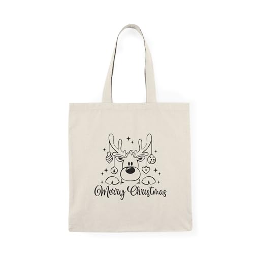 Generic - Tote Bag - Canvas Zipper Bag – Cute Christmas Deer Design – Cute Christmas Design for Gifts & Occasions – Printed Outdoor Shopping Bag – Lightweight, Durable & Eco-Friendly for College Gift