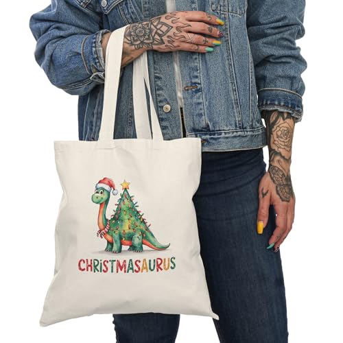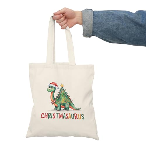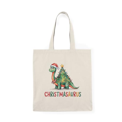 Generic - Tote Bag - شنطة قماش بسوستة – بتصميم ديناصور الكريسماس اللطيف – تصميم كريسماس لطيف للهدايا والمناسبات – شنطة خروج وتسوق مطبوعة – خفيفة ومتينة وصديقة للبيئة مناسبة للهدايا والجامعة