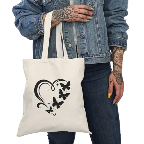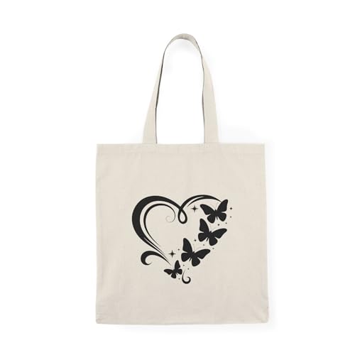 Generic - Tote Bag - شنطة قماش بسوستة – بتصميم قلب الفراشات الأنيق – شنطة خروج وتسوق مطبوعة – خفيفة ومتينة وصديقة للبيئة مناسبة للهدايا والجامعة