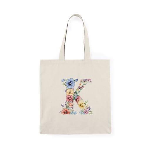 Generic - Tote Bag - Canvas Zipper Bag – Floral & Floral Letter K Design – Printed Shopping & Outdoor Bag – Lightweight, Durable & Eco-Friendly for Gift & College