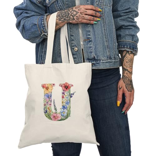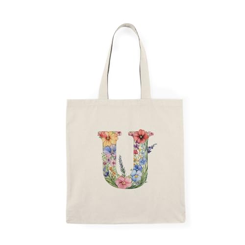 Generic - Tote Bag - شنطة قماش بسوستة – تصميم حرف U مزين بالورود والأزهار – شنطة خروج وتسوق مطبوعة – خفيفة ومتينة وصديقة للبيئة مناسبة للهدايا والجامعة