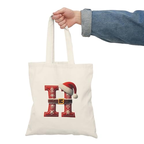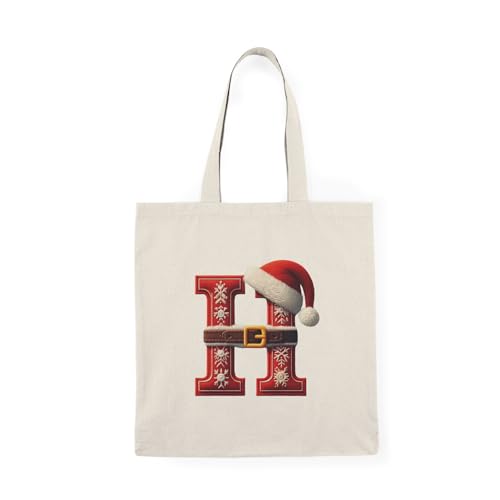 Generic - Tote Bag - Canvas Zipper Bag - Letter H Christmas Design - Santa Hat & Christmas Belt - Printed Shopping Bag - Light and Durable Eco-Friendly - College Gift Bag