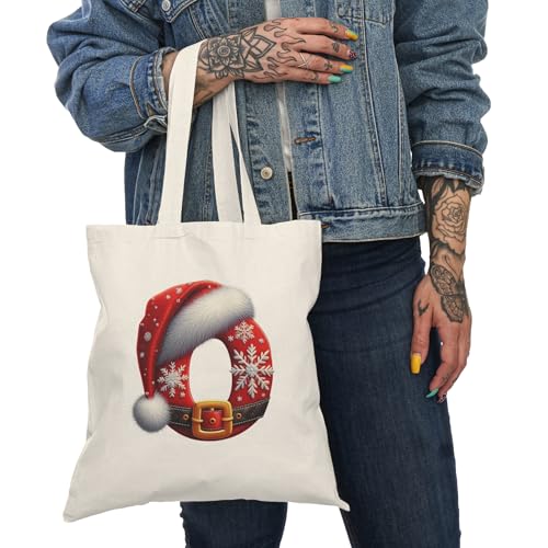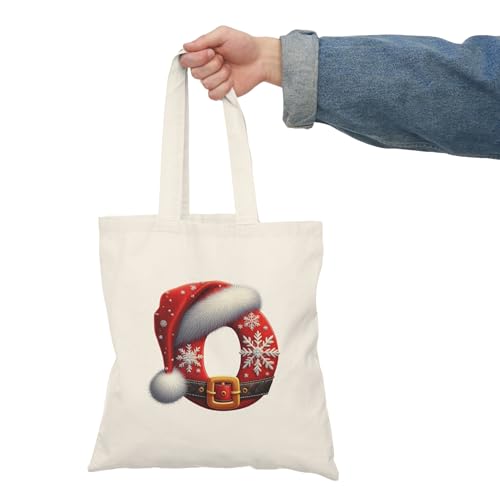 Generic - Tote Bag - Canvas Zipper Bag - Letter O Christmas Design - Santa Hat & Christmas Belt - Printed Shopping Bag - Light and Durable Eco-Friendly - College Gift Bag