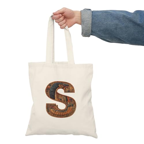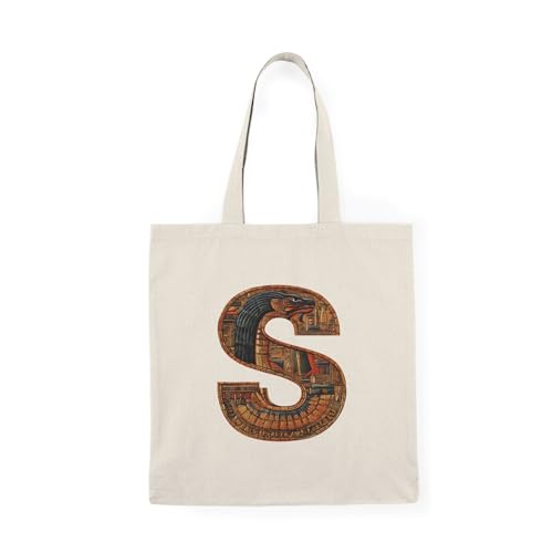 Generic - Tote Bag - Canvas Zipper Bag - Letter S with Unique Pharaonic Design - Printed Shopping Bag - Light and Durable Eco Friendly for Gift and College