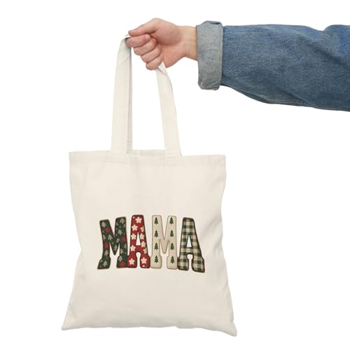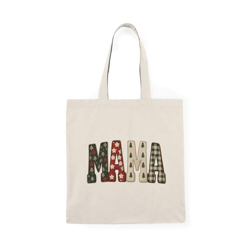 Generic - Tote Bag - شنطة قماش بسوستة – تصميم بكلمة MAMA ونقوش مربعة وأشجار الأعياد هدية حب للأم – شنطة خروج وتسوق مطبوعة – خفيفة ومتينة وصديقة للبيئة مناسبة للهدايا والجامعة