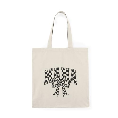 Generic - Tote Bag - Canvas Zipper Bag – MAMA Vintage Check Design & Big Bow Love Gift for Mom – Printed Shopping Bag – Lightweight, Durable & Eco Friendly College Gift Bag