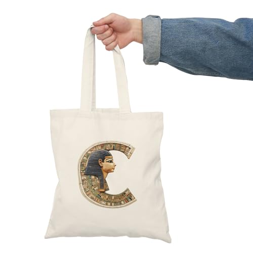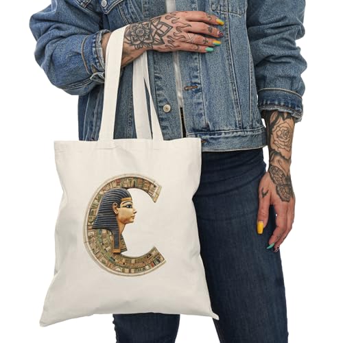 Generic - Tote Bag - شنطة قماش بسوستة – بحرف C بتصميم فرعوني وزخارف مصرية قديمة – شنطة خروج وتسوق مطبوعة – خفيفة ومتينة وصديقة للبيئة مناسبة للهدايا والجامعة