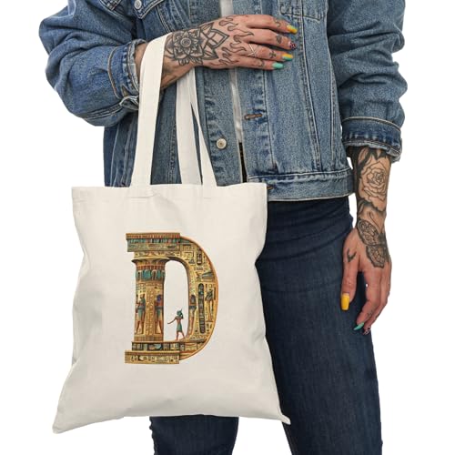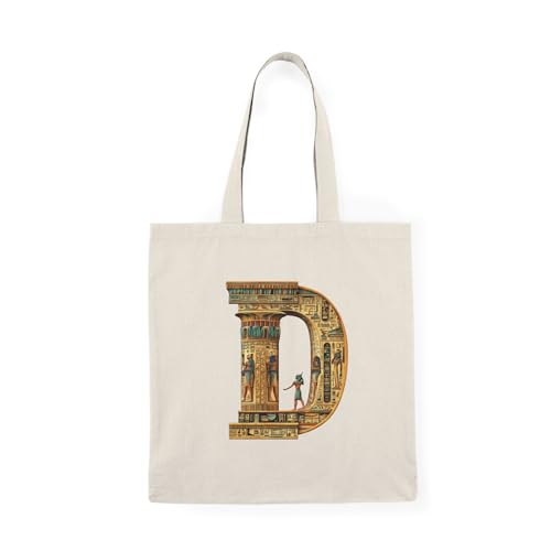 Generic - Tote Bag - شنطة قماش بسوستة – بحرف D بتصميم فرعوني مزخرف بالنقوش المصرية القديمة – شنطة خروج وتسوق مطبوعة – خفيفة ومتينة وصديقة للبيئة مناسبة للهدايا والجامعة