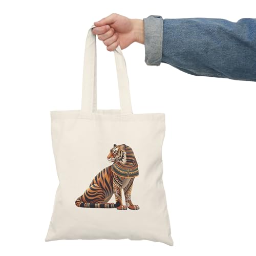 Generic - شنطة توت قماشية بسحاب - شنطة قماشية بتصميم نمر فرعوني - صديقة للبيئة وانيقة ومتينة، مثالية للاستخدام اليومي والهدايا - شنطة يد كبيرة توت بتصميم نمر مصري - قماش صديق للبيئة - 199