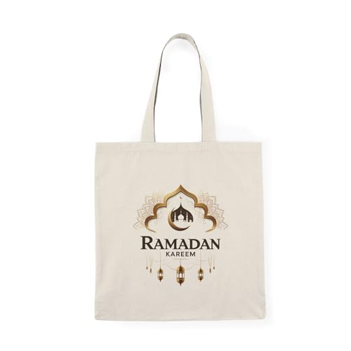 Generic - Tote Bag - Canvas Zipper Bag – Ramadan Kareem Premium Design with Crescent Mosques and Lanterns – Printed Shopping Bag – Lightweight, Durable & Eco-Friendly for Gift & College