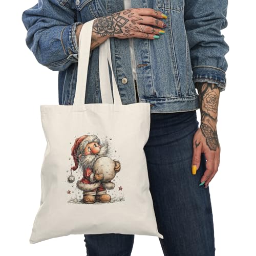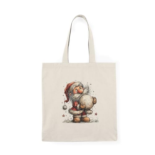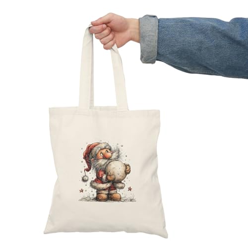 Generic - Tote Bag - Canvas Zipper Bag – Santa Claus with Snowball Design – Cute Christmas Design for Gifts & Occasions – Printed Shopping Bag – Lightweight, Durable & Eco-Friendly for College Gift