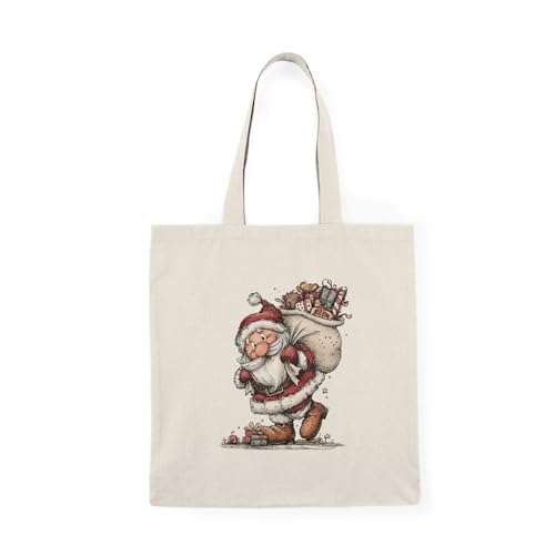 Generic - Tote Bag - شنطة قماش بسوستة – تصميم سانتا مع هدايا الكريسماس – شنطة خروج وتسوق مطبوعة – خفيفة ومتينة وصديقة للبيئة مناسبة للهدايا والجامعة