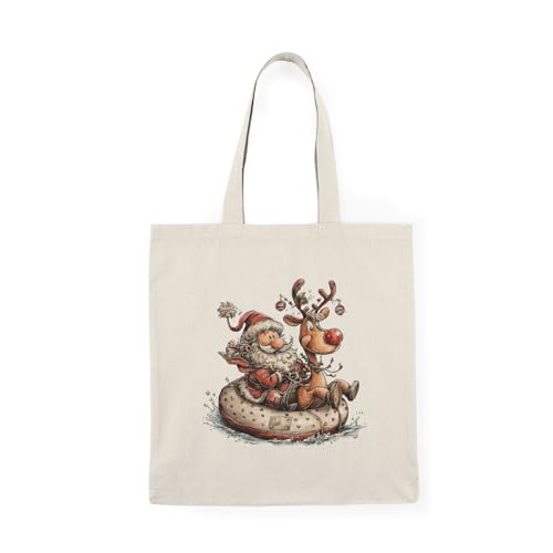 Generic - Tote Bag - Canvas Zipper Bag - Santa with Reindeer Christmas - Printed Shopping Bag - Light and Durable Eco Friendly for College Gift