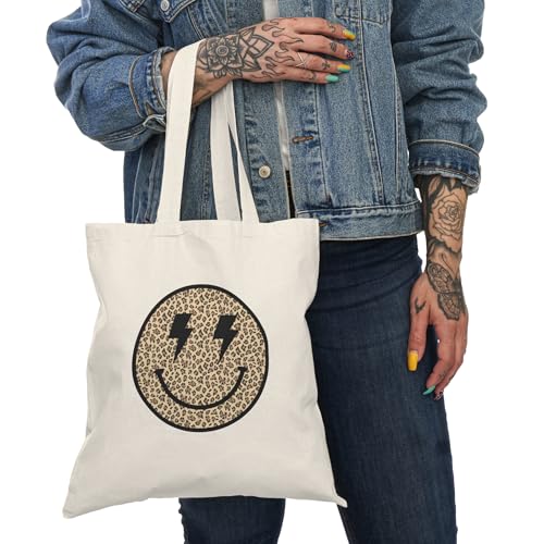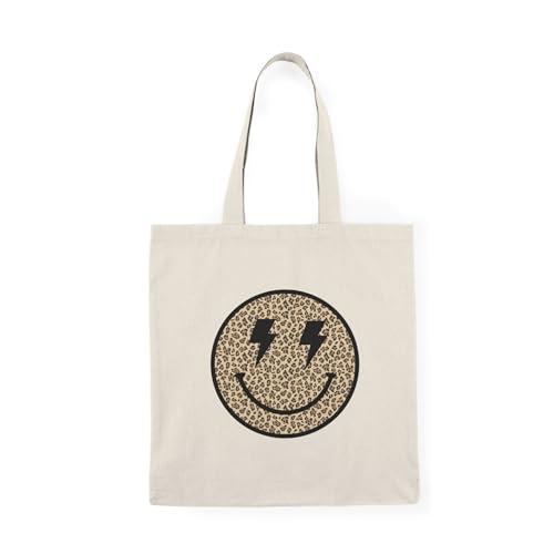 Generic - Tote Bag - شنطة قماش بسوستة – بتصميم سميلـي ليوبارد ستايل – لمسة جريئة وعصرية – شنطة خروج وتسوق مطبوعة – خفيفة ومتينة وصديقة للبيئة مناسبة للهدايا والجامعة