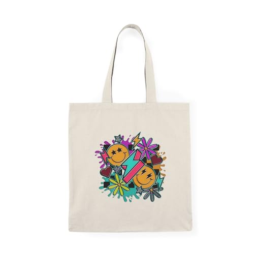 Generic - Tote Bag - Canvas Zipper Bag - Smiley & Colorful Flowers - Printed Shopping Bag - Light and Durable - Eco-Friendly - College Gift Bag